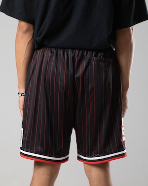・レッド×ブラックのピンストライプが放つ王道ストリートバスケの空気感。大胆な「SOUTH」アーチロゴが、ゲームでもストリートでも視線を奪う。