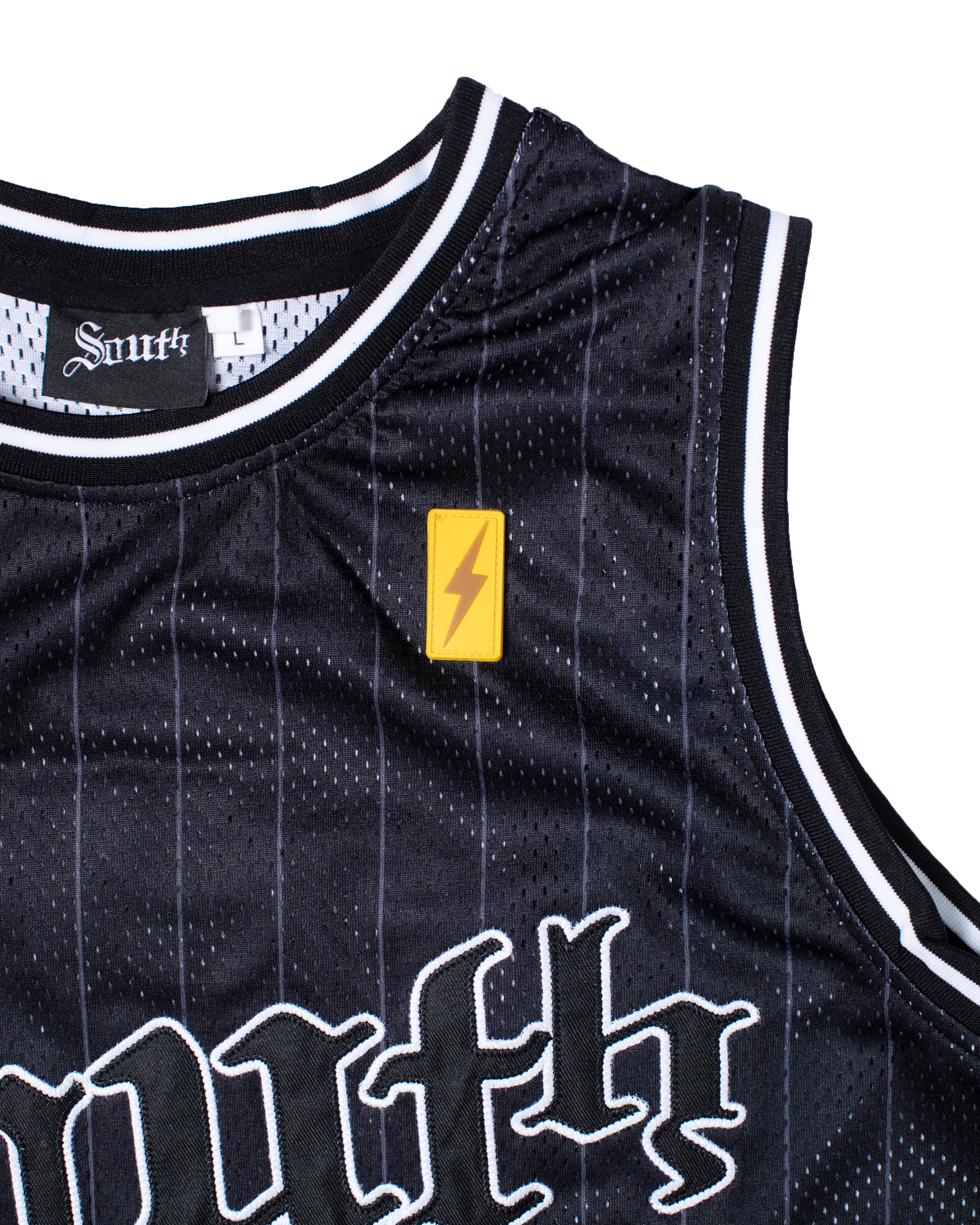 ・着丈部分にはSOUTHオリジナルタグを縫い付け、ひと味違うバスケウェアを演出。