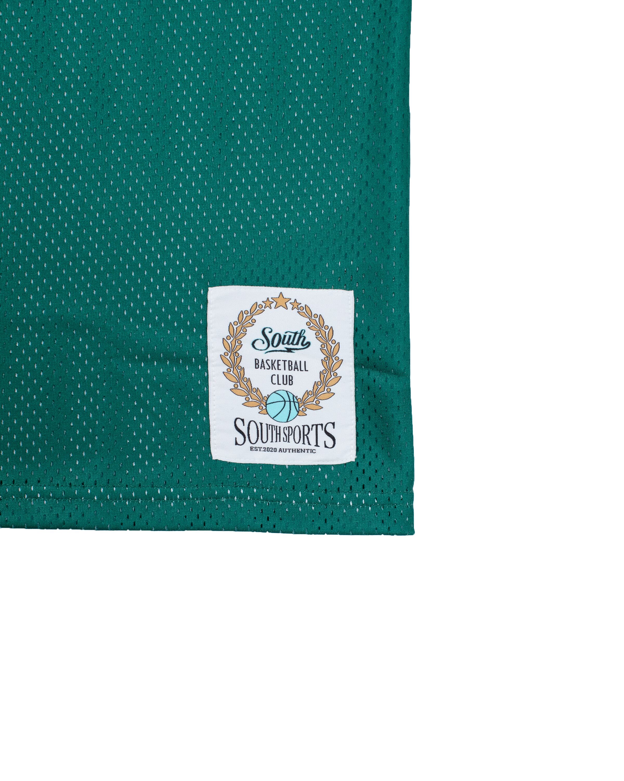 ・着丈部分にはSOUTHオリジナルタグを縫い付け、ひと味違うバスケウェアを演出。