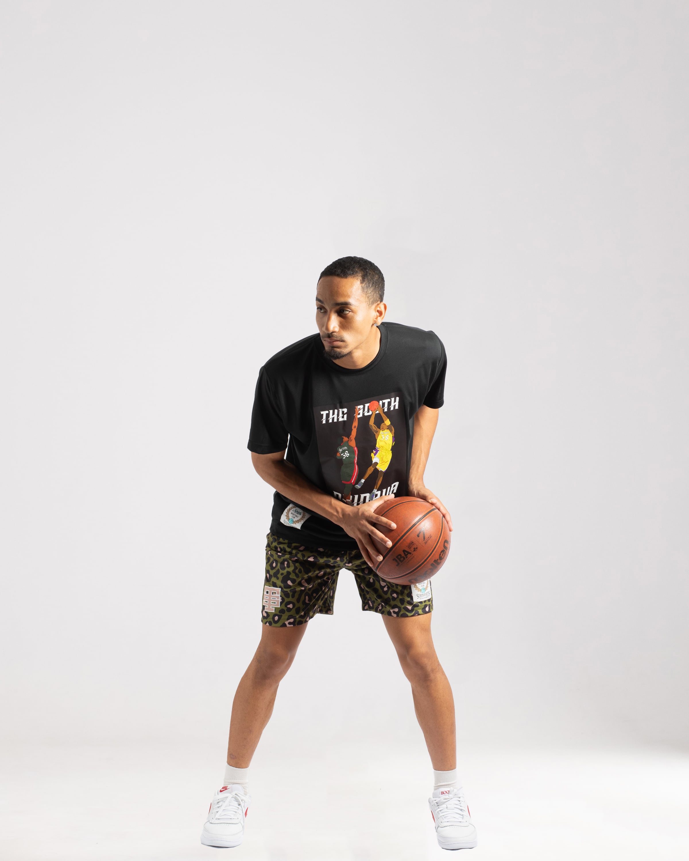・着丈部分にはSOUTHオリジナルタグを縫い付け、ひと味違うバスケウェアを演出。