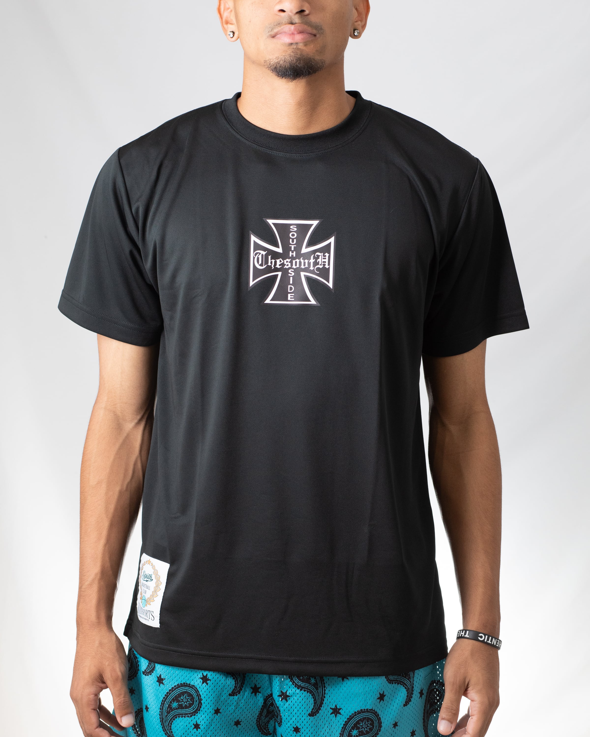 ・着丈部分にはSOUTHオリジナルタグを縫い付け、ひと味違うバスケウェアを演出。