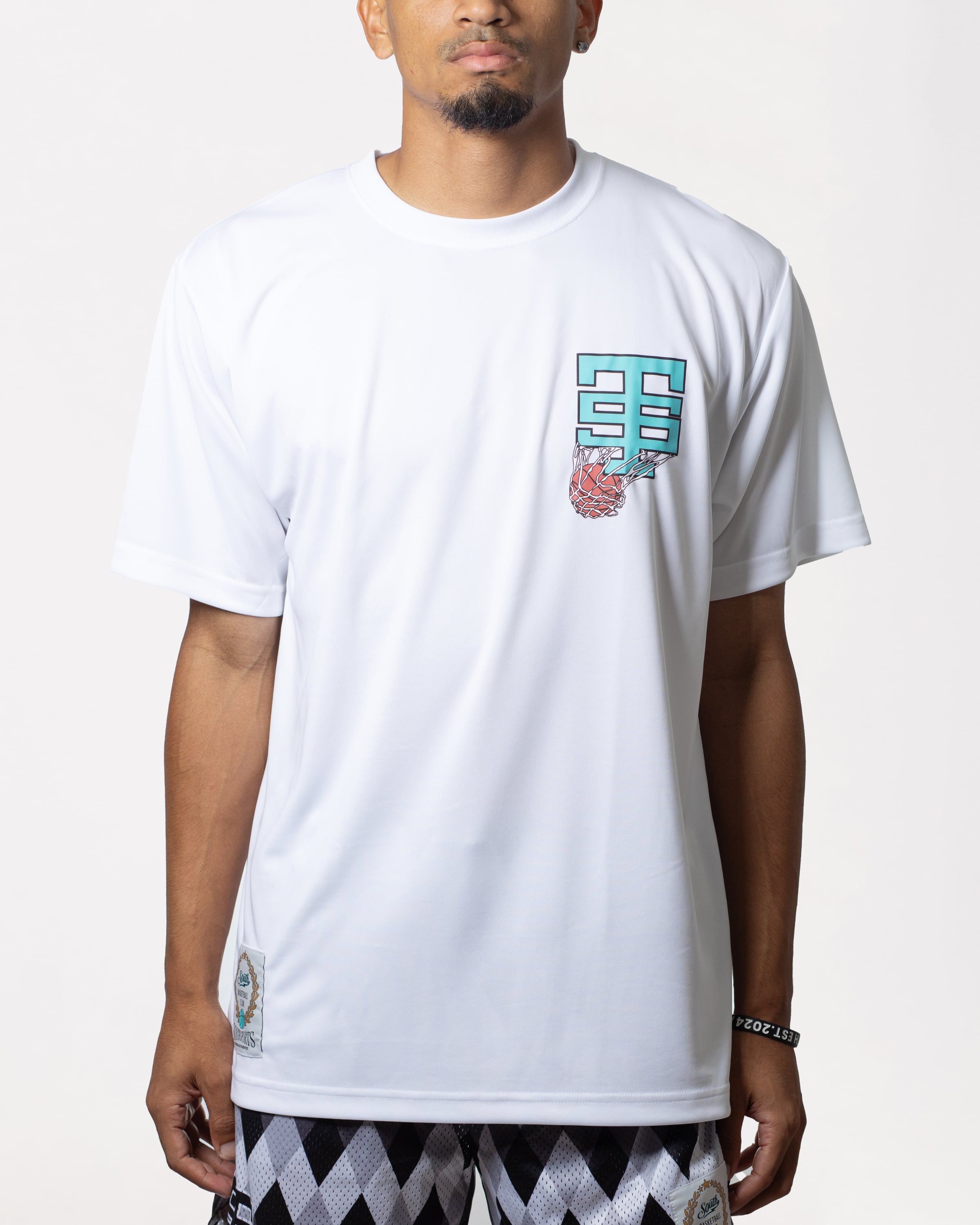 ・着丈部分にはSOUTHオリジナルタグを縫い付け、ひと味違うバスケウェアを演出。