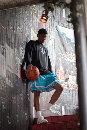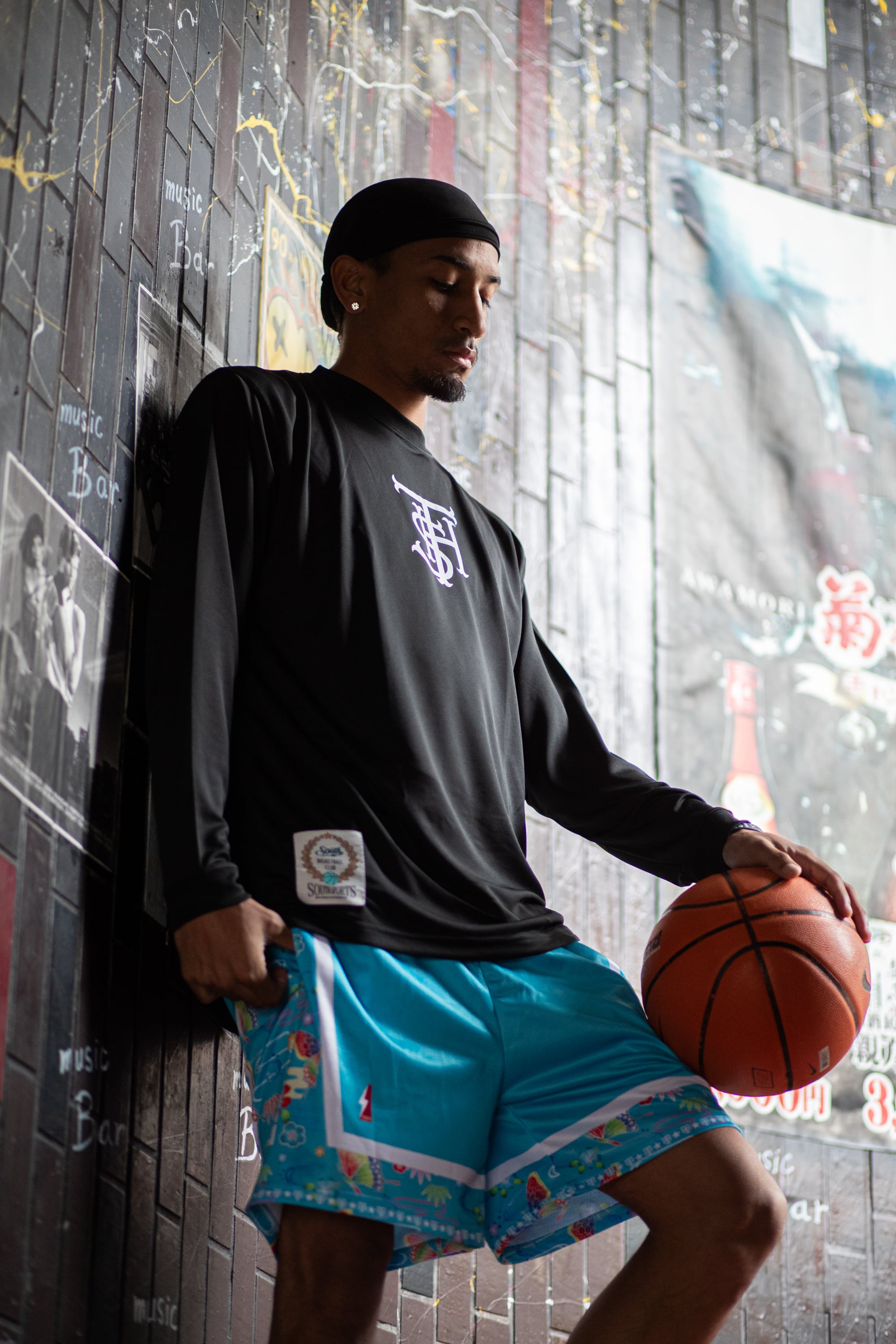 ・着丈部分にはSOUTHオリジナルタグを縫い付け、ひと味違うバスケウェアを演出。