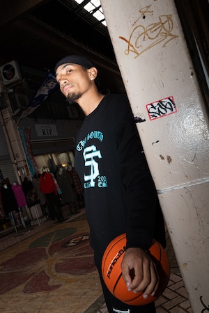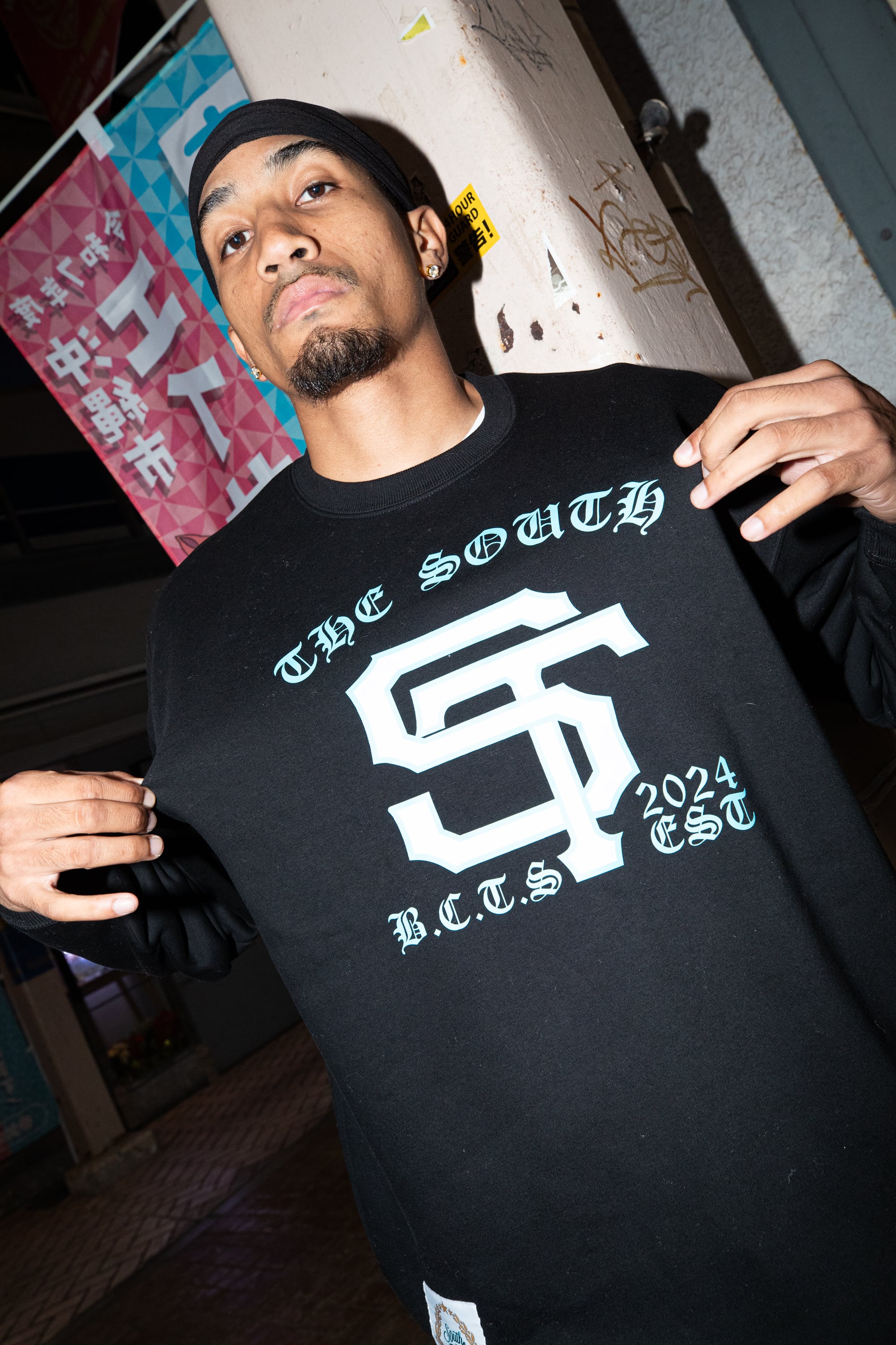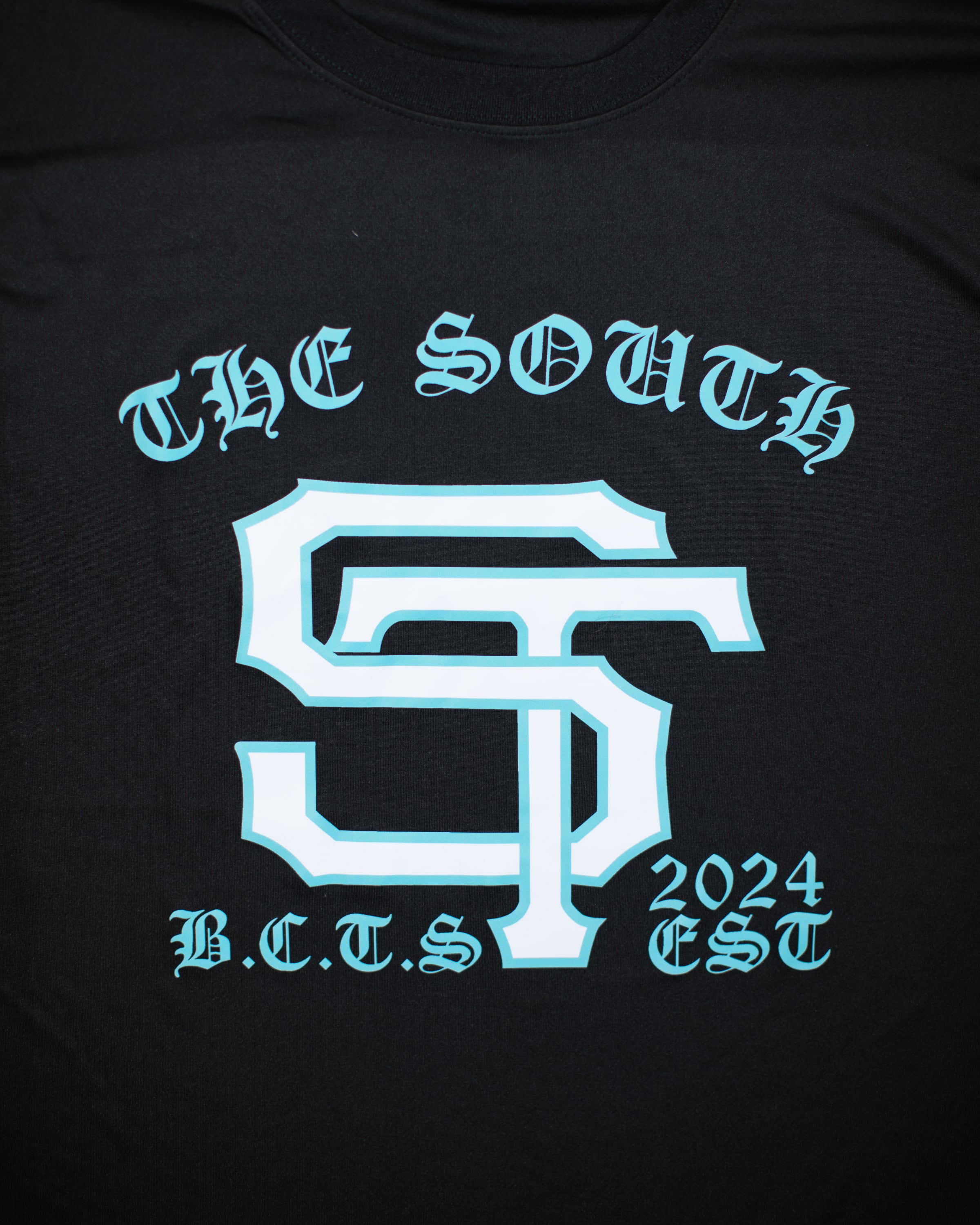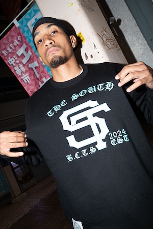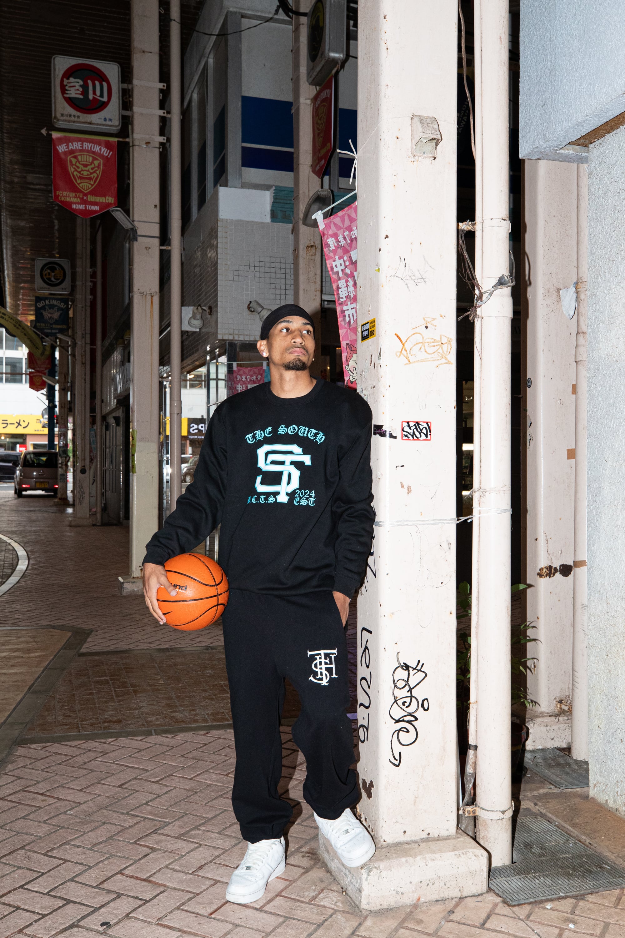 ・着丈部分にはSOUTHオリジナルタグを縫い付け、ひと味違うバスケウェアを演出。