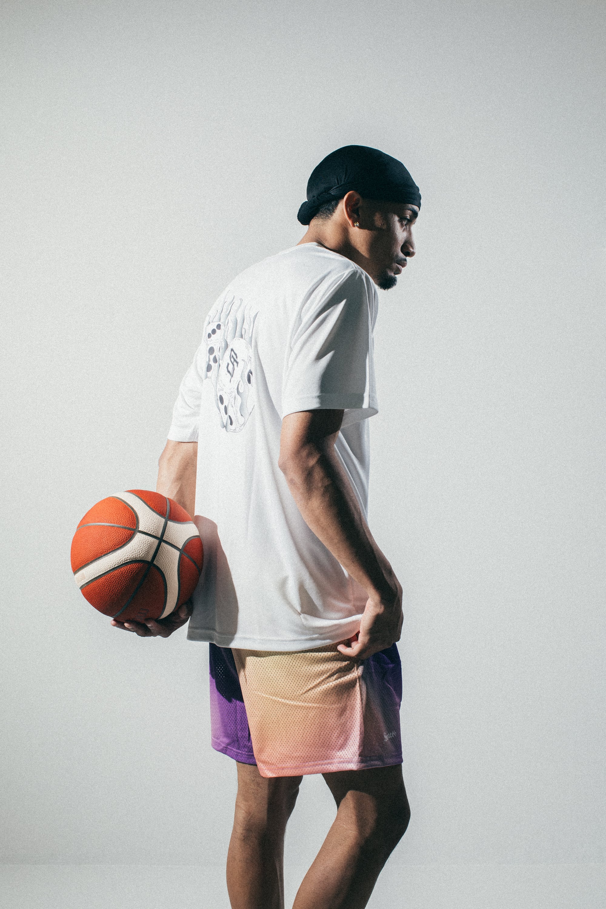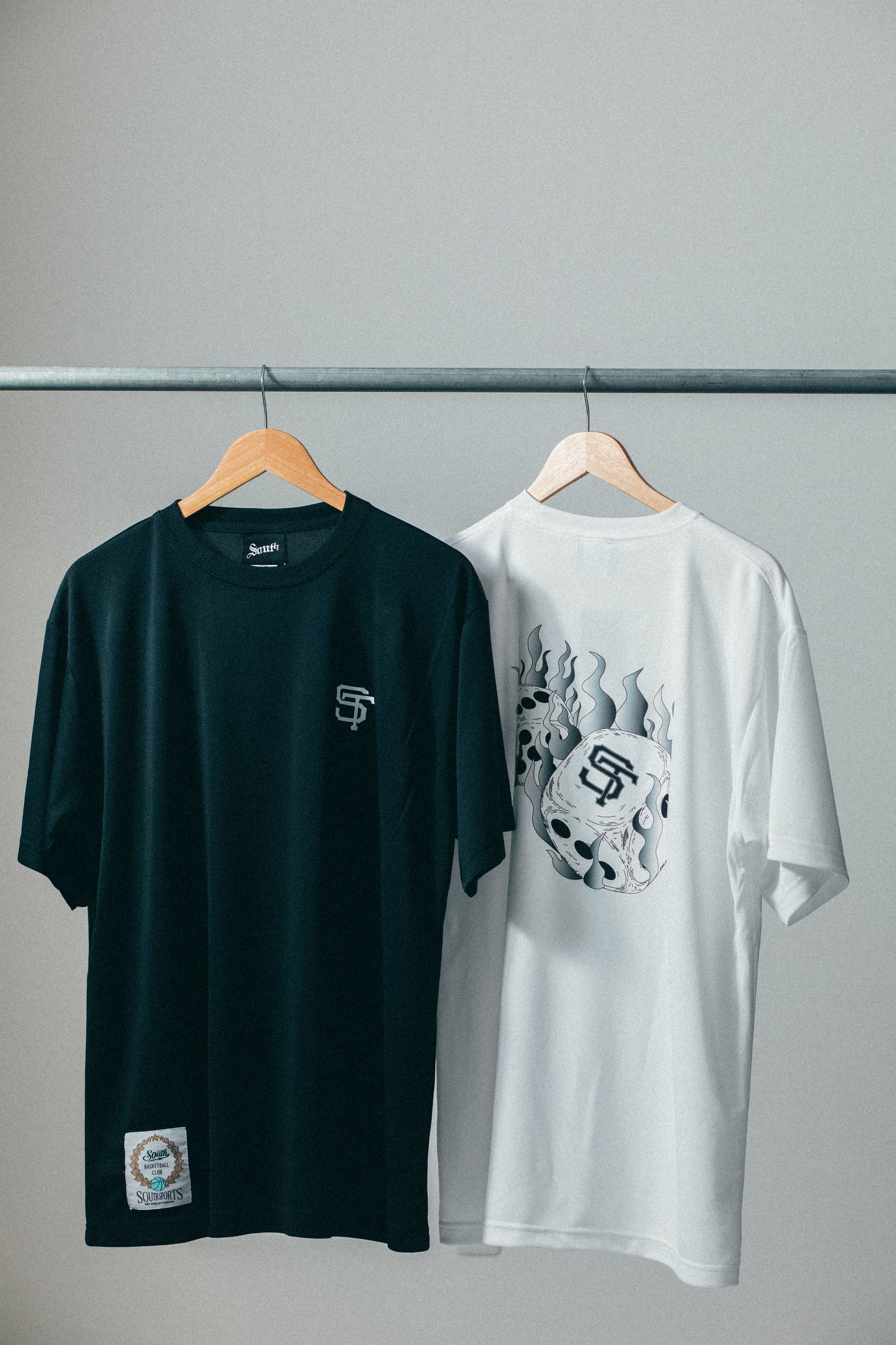 ・着丈部分にはSOUTHオリジナルタグを縫い付け、ひと味違うバスケウェアを演出。