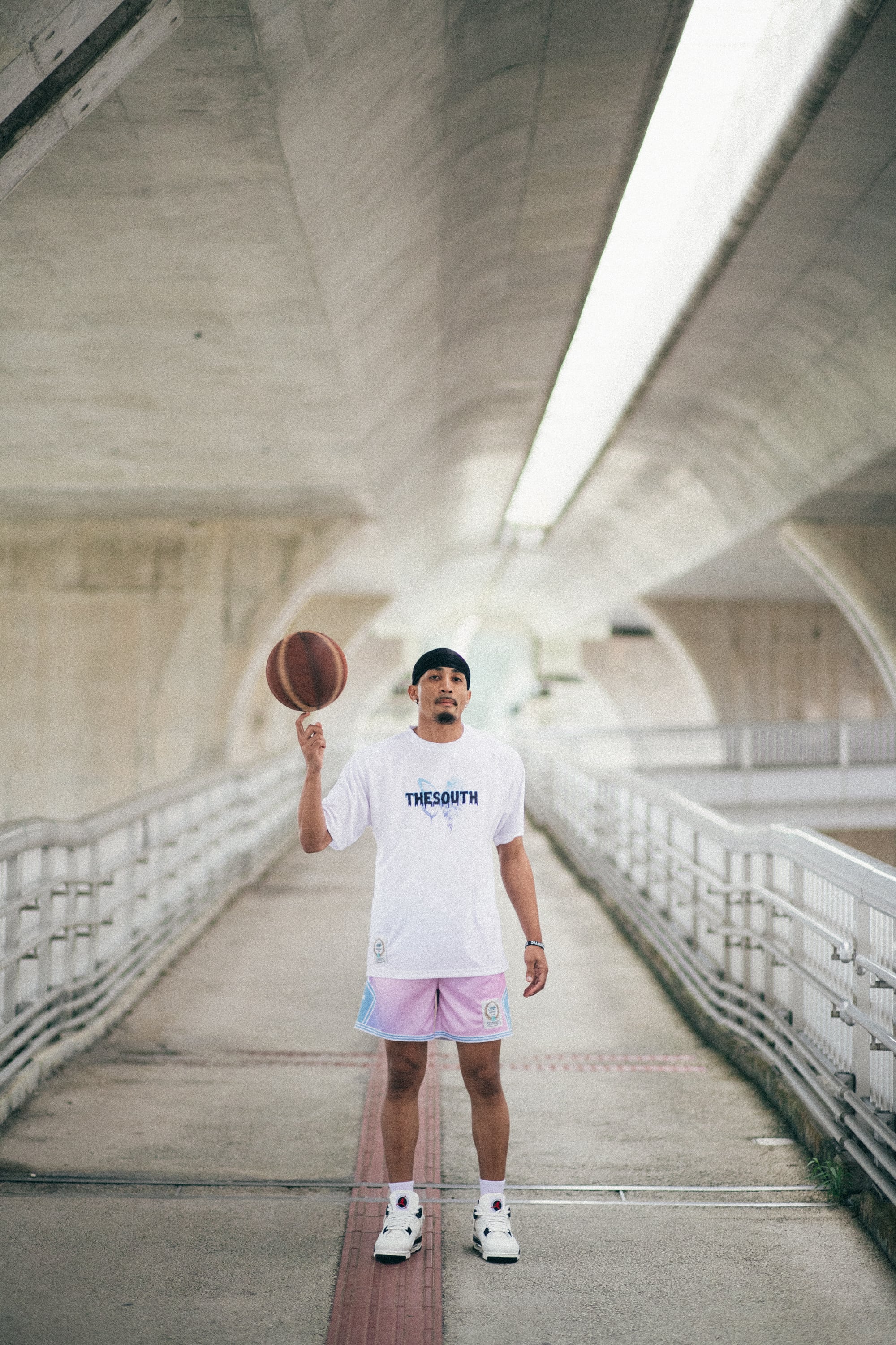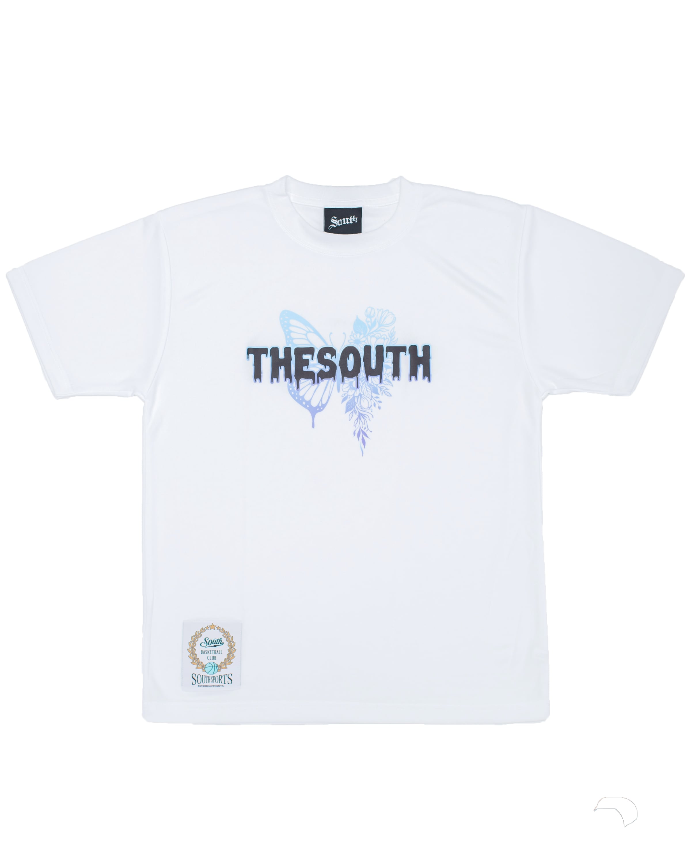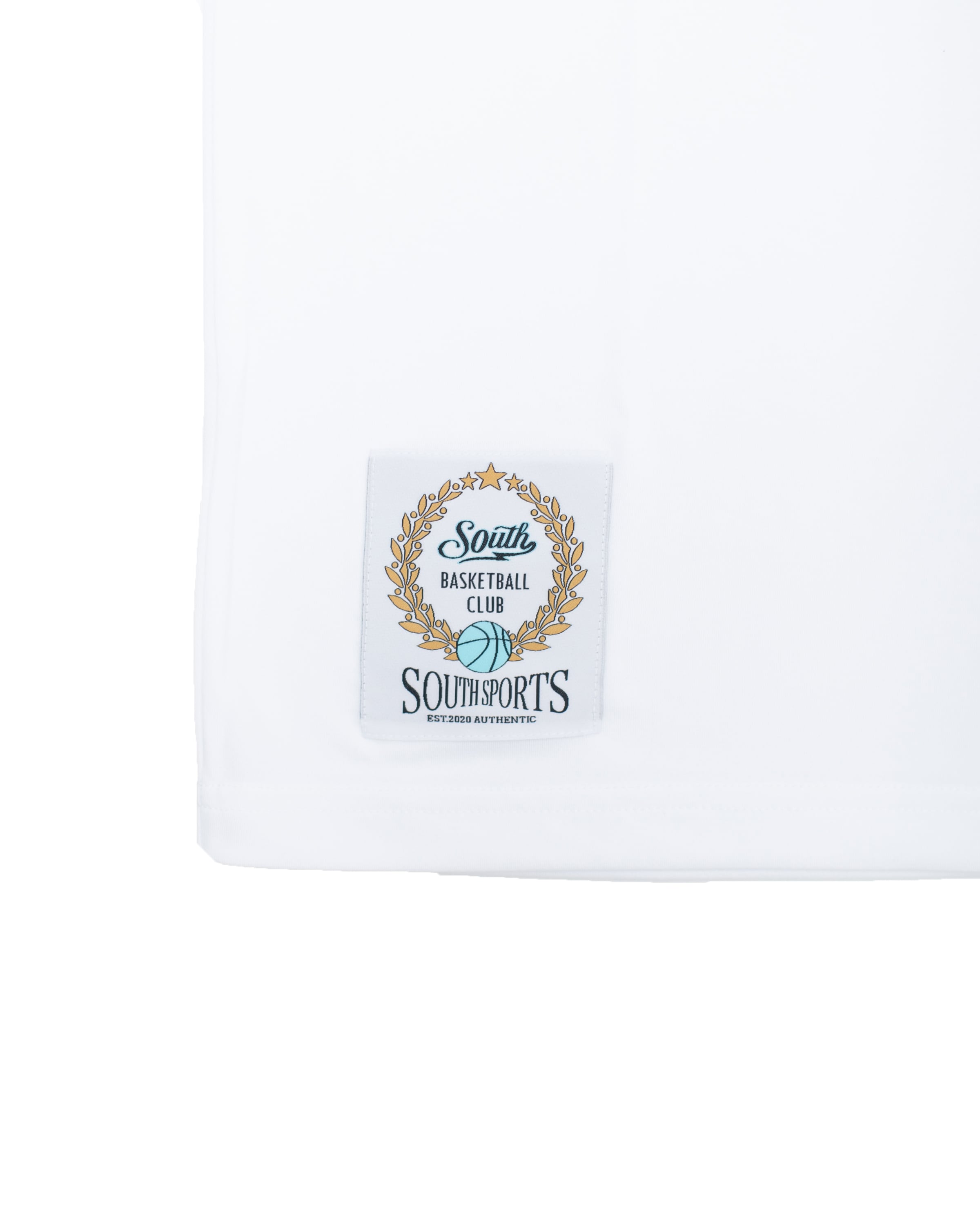 ・着丈部分にはSOUTHオリジナルタグを縫い付け、ひと味違うバスケウェアを演出。