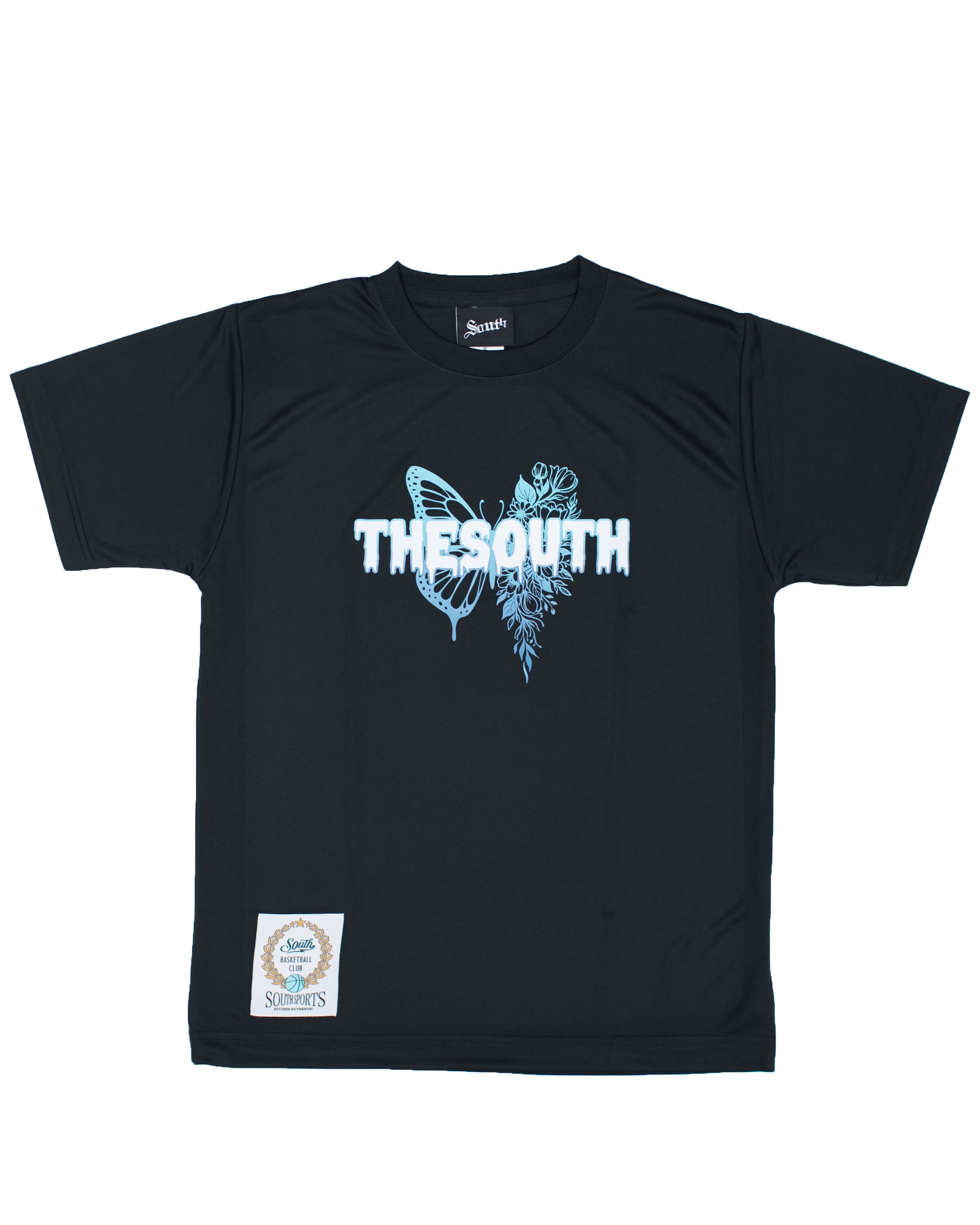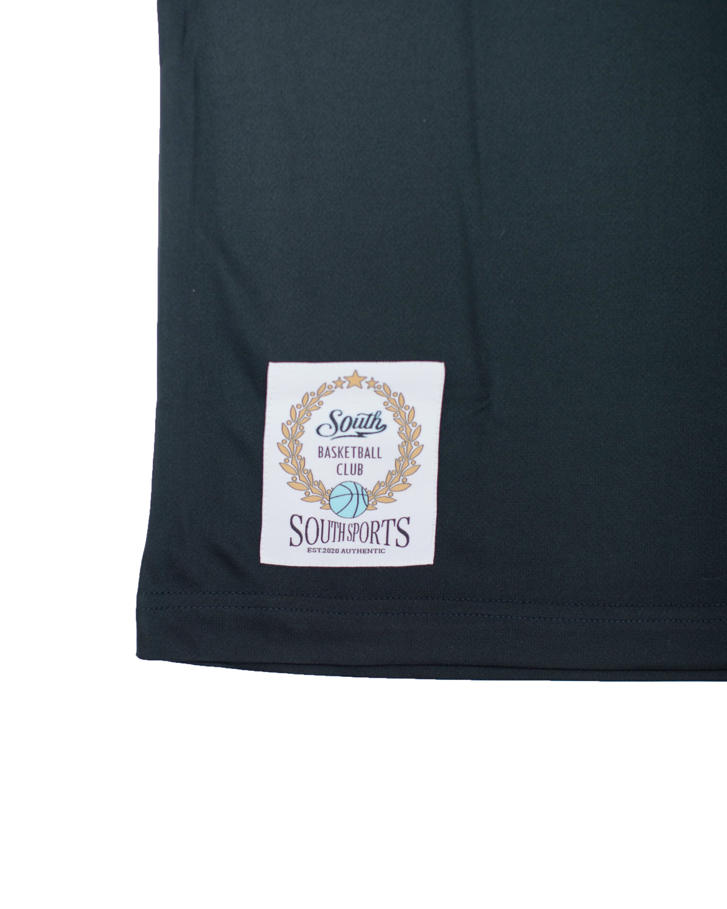 ・着丈部分にはSOUTHオリジナルタグを縫い付け、ひと味違うバスケウェアを演出。